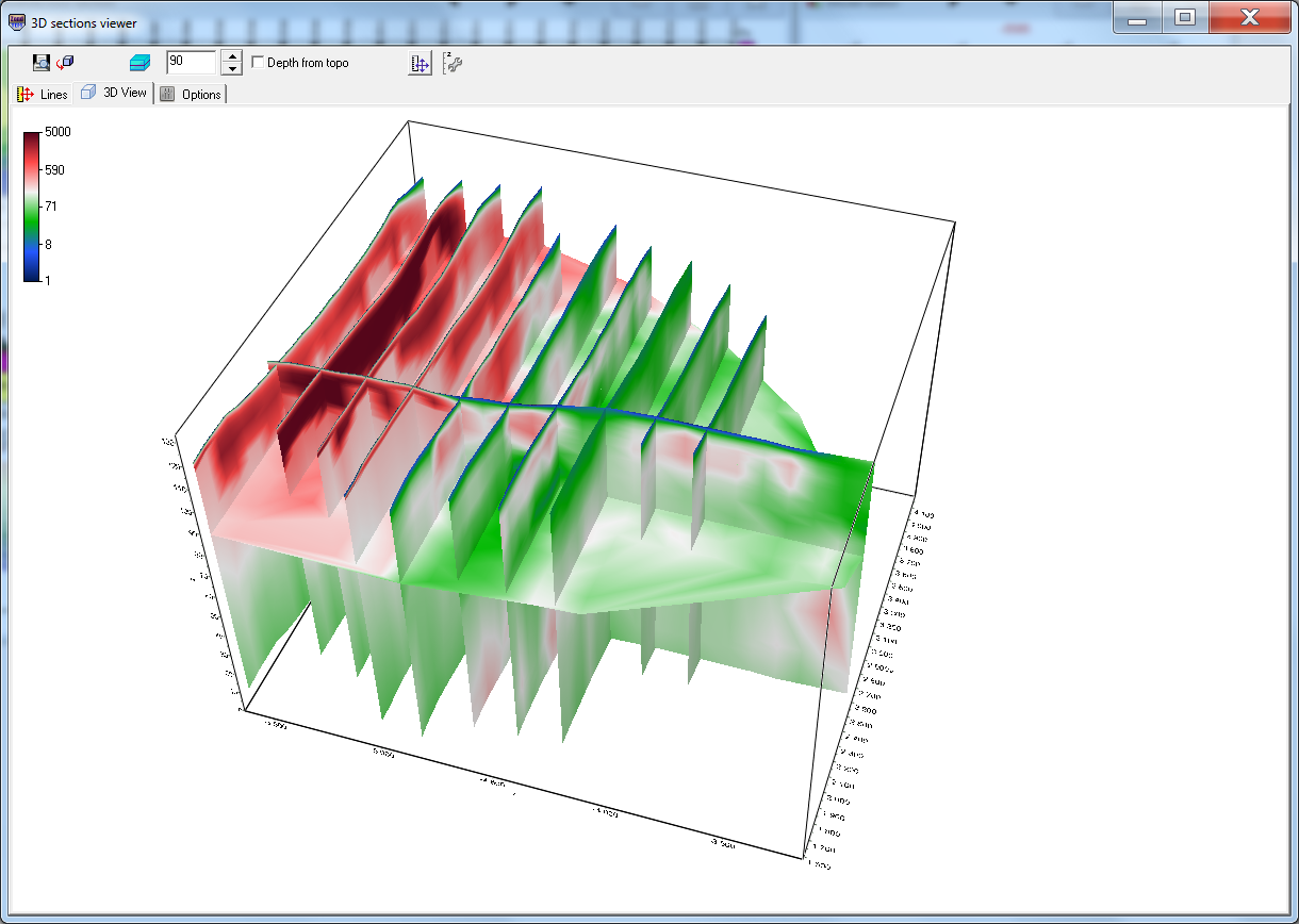 - Number of variants for data, model and apriori information visualization(section or plane). Ability to set a semi transparent background for the resistivity section or map(geological, seismic sections).